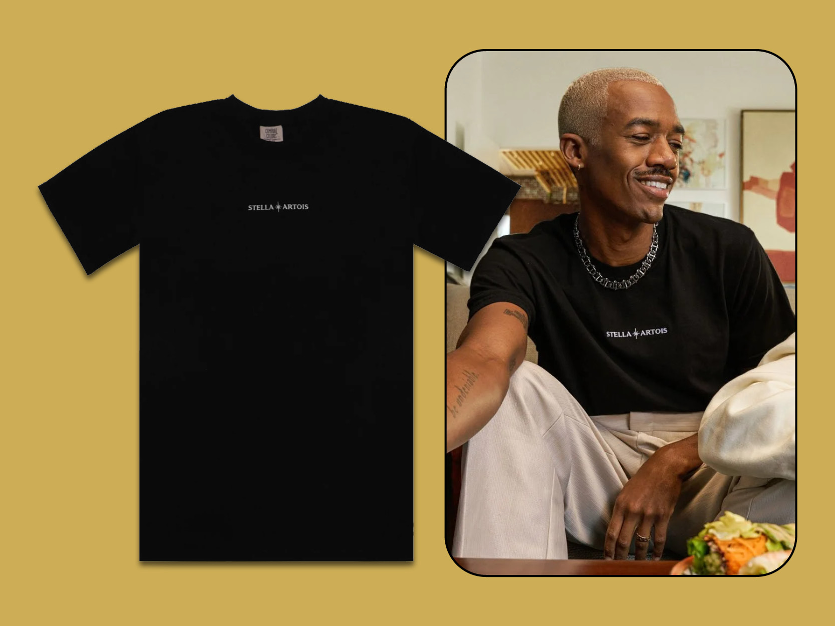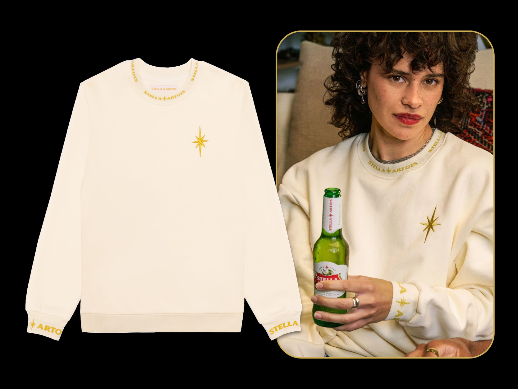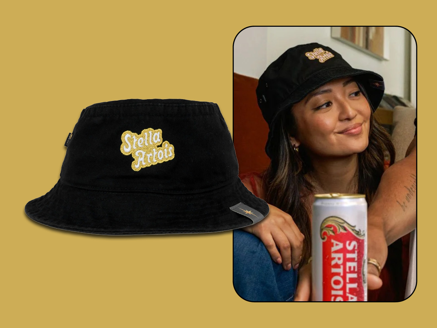 Stella Artois' Always On Streetwear line showcases a sleek black tee with the Stella logo embroidered on the chest, offering a minimal statement piece. The collection also includes a cozy cream crew neck, featuring the logo elegantly wrapping around the neck and wrists, adding a touch of sophistication to the minimal black tee. A stylish black bucket hat, adorned with a modern Stella logo on the front, complements the ensemble perfectly. Additionally, the line features a hoodie with the same contemporary logo printed in trendy puffy ink on the back, making it a standout item for any streetwear enthusiast.
